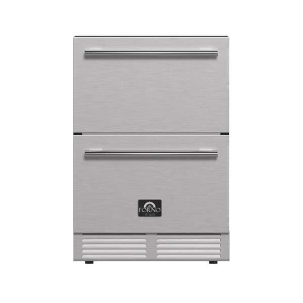 The Forno Cosenza 24-Inch Built-In Indoor Outdoor Freezer Drawer with Ice Maker is designed for both indoor and outdoor use, offering versatile cooling wherever you need it. Its durable, rust-resistant stainless steel finish stands up to the elements while maintaining a clean, modern look. Interior LED lighting adds visibility and convenience, making it easy to grab a cold drink or frozen treat any time. Sleek, functional, and weather-ready, this freezer drawer is your go-to for keeping things cool in any setting.