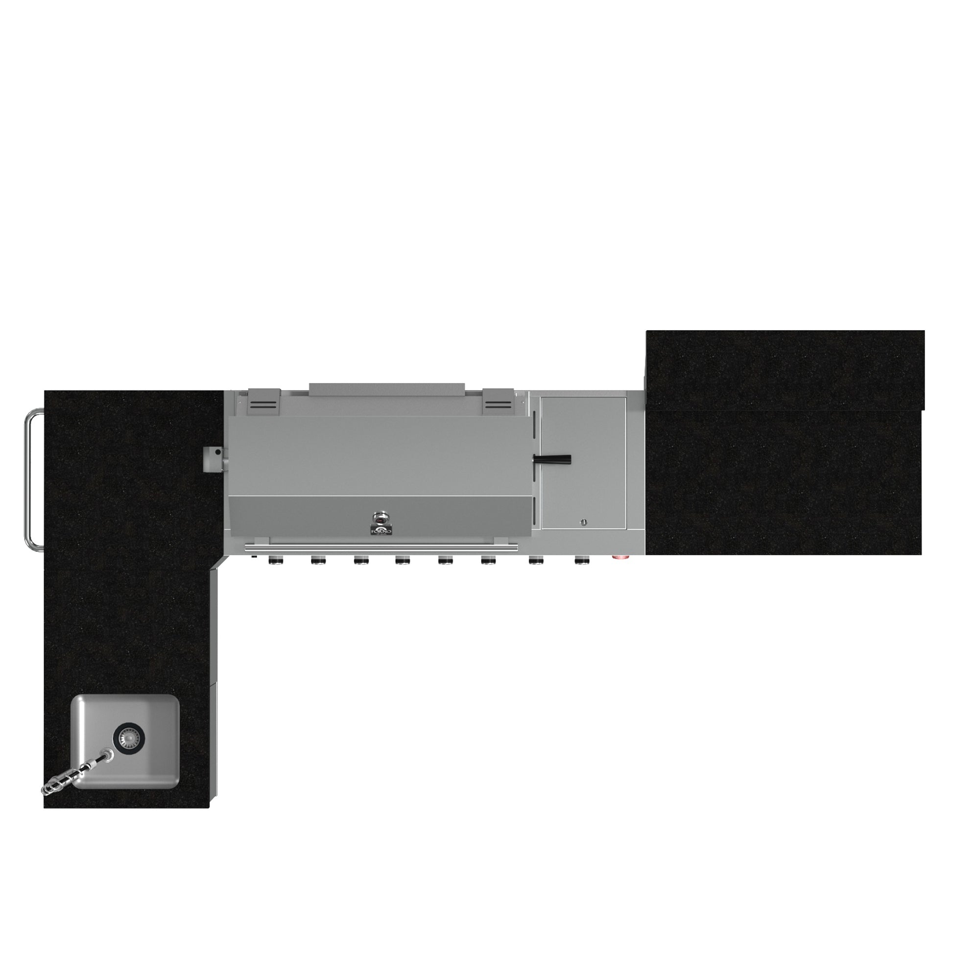 Cook, chill and entertain with this full-featured 40 inch Outdoor Kitchen Set, featuring 304 stainless steel burners, elegant black sintered stone countertops, a cast iron griddle, side burner, rotisserie kit, beverage center, halogen lights, and a roomy 38 inch x 18 inch grill surface for big outdoor feasts.