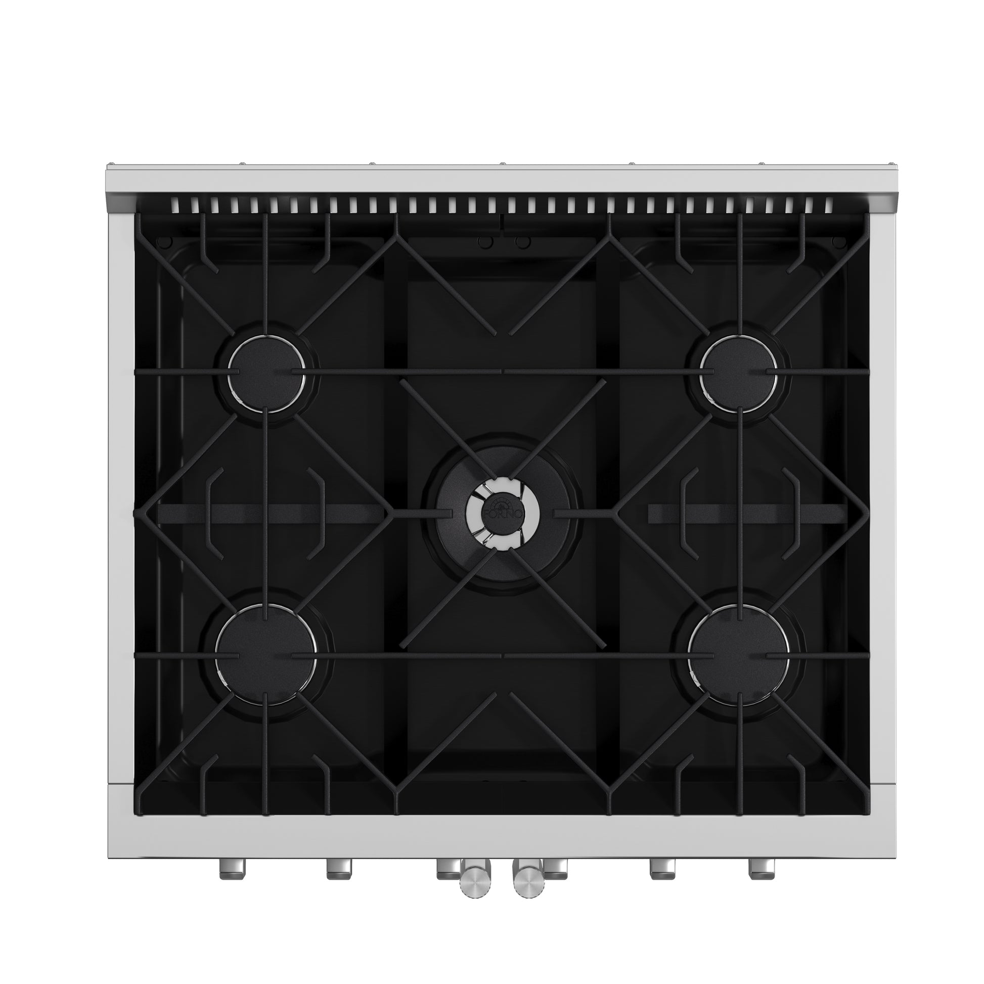 The Forno Galiano 30" French Door Gas Range brings professional styling and performance into your home kitchen at an affordable price. Enjoy effortless access to your oven with French doors that offer an extra 12 inches of space. The cooking surface has four sealed burners with a total output of 68,000 BTU - one of which is a 20,000 BTU dual-ring burner that can reach a precise simmer of 1,000 BTU. Cast iron grates ensure stability over the cooktop, making spills easy to clean. With a powerful 30,000 BTU output, the 4.32 cu. ft. oven features a sleek black enamel interior and a convection fan for quick, precise cooking. The 3-layer glass oven door lets you effortlessly monitor your meals. Zinc-coated metal knobs with bezel rings are built to stay beautiful for years, adding a touch of lasting elegance to your kitchen. Two electroplated oven racks and an LP conversion kit are included.
