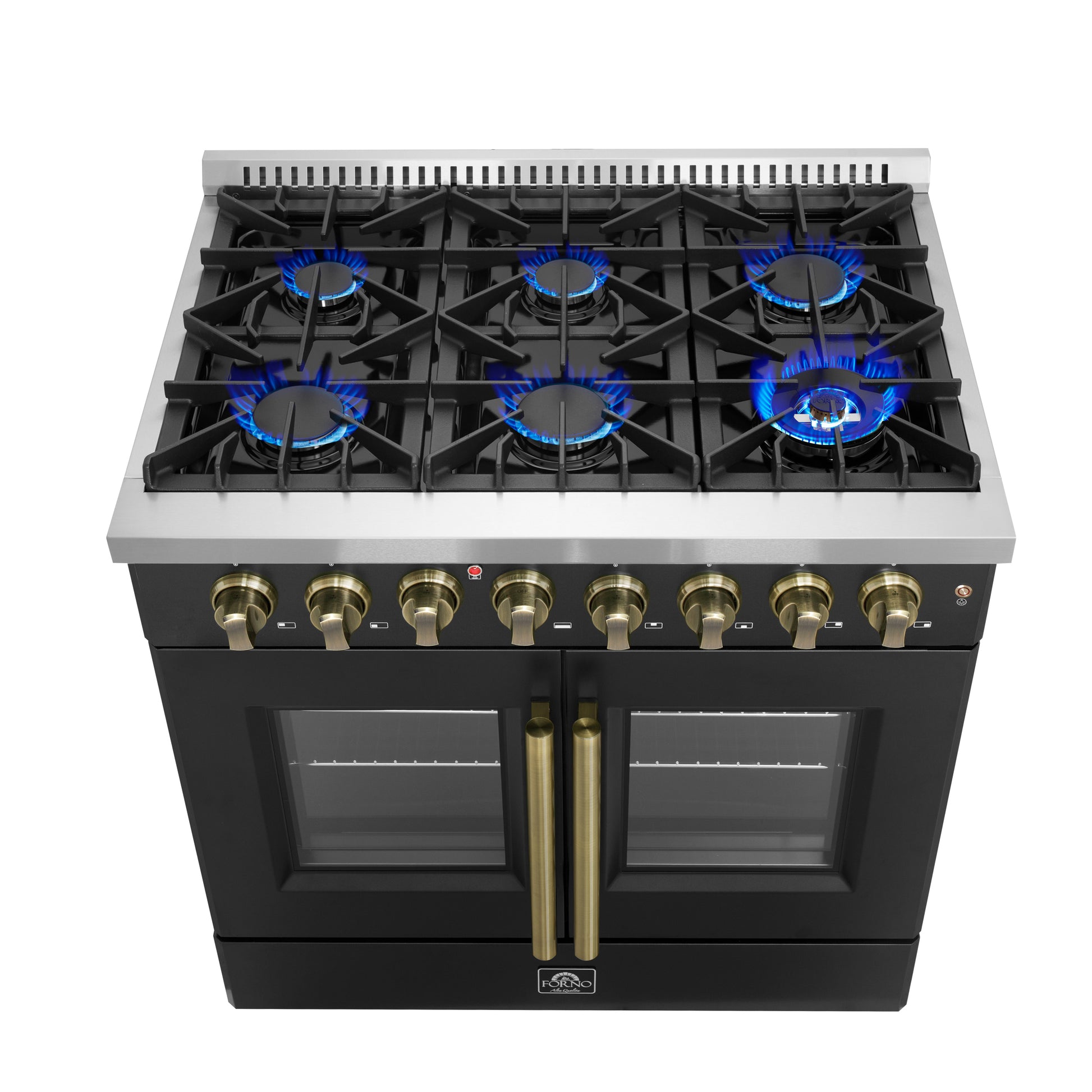 Forno Galiano 36-inch Freestanding French Door Dual Fuel Range Black