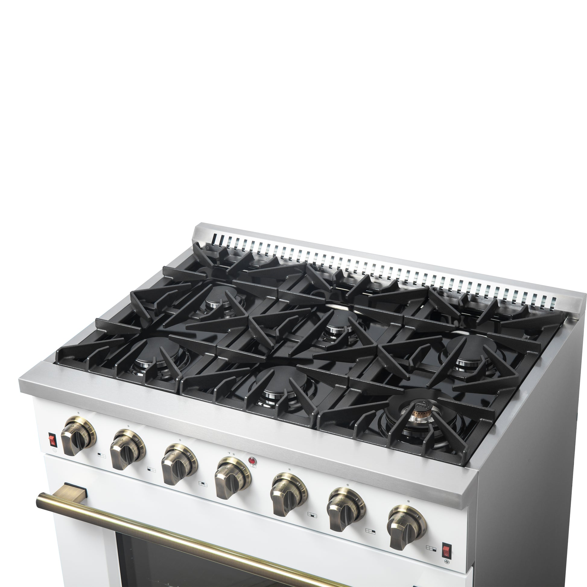 Forno Galiano 36-inch Freestanding Gas Range in White with Antique Brass Design, 6 Burners, 83,000 BTU, 5.36 cu.ft. Convection Oven