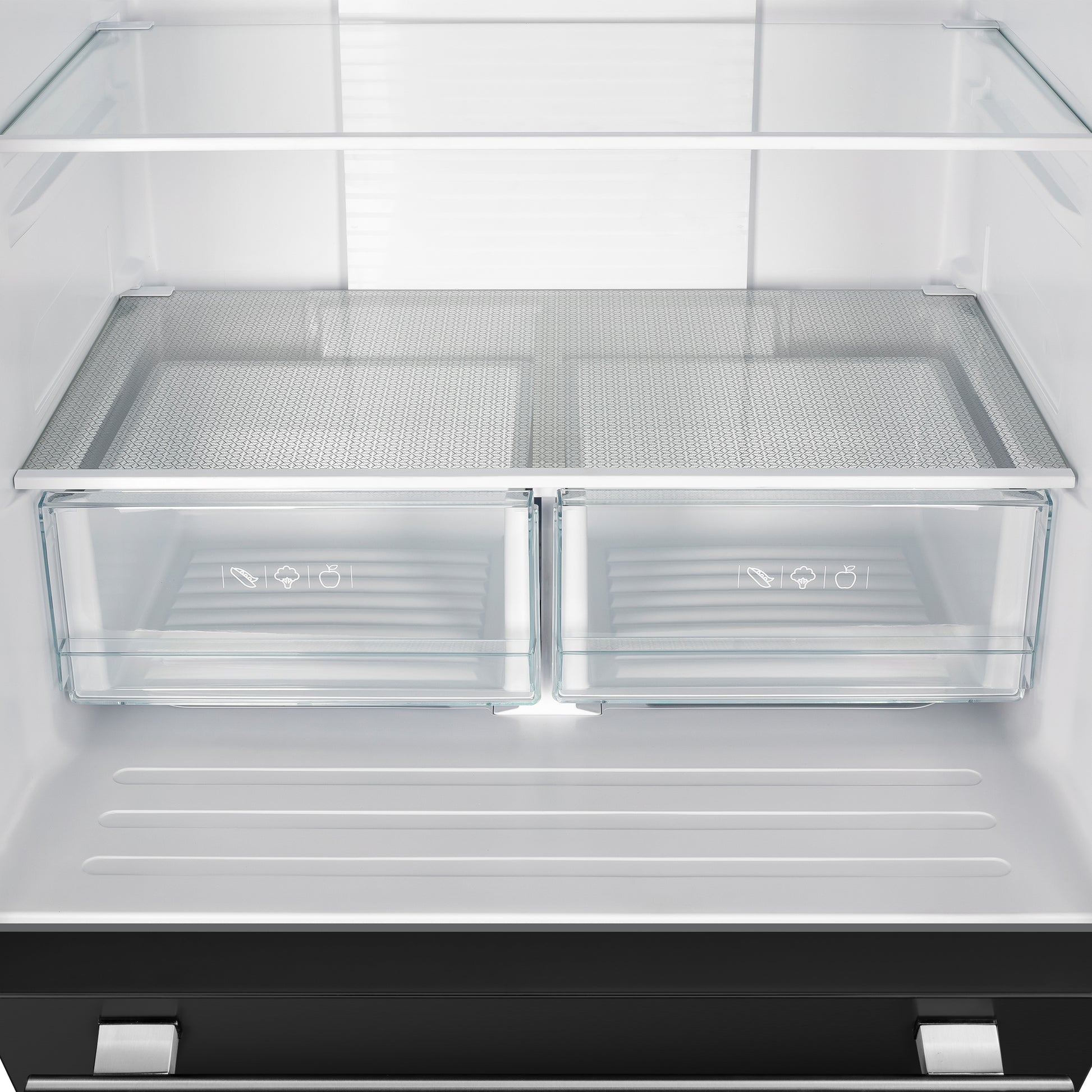 The Forno Gallipoli 30" Stainless Steel French Door Refrigerator offers a perfect blend of style, efficiency, and modern cooling technology. Its 17.5 cu. ft. capacity includes 12.4 cu. ft. of fresh food storage with adjustable glass shelves, crisper drawers, and spacious door bins, while the 5.1 cu. ft. freezer features a pull-out drawer, dual storage bins, and an automatic ice maker producing up to 4 lbs. of ice daily. A high-efficiency inverter compressor ensures quiet operation and precise temperature control, while the LED touch panel allows effortless adjustments. ENERGY STAR Certified for optimal performance, this refrigerator also features bright LED lighting to reduce spoilage. Finished with antique brass handles and a modern decorative grill, it adds a sophisticated touch to any kitchen.