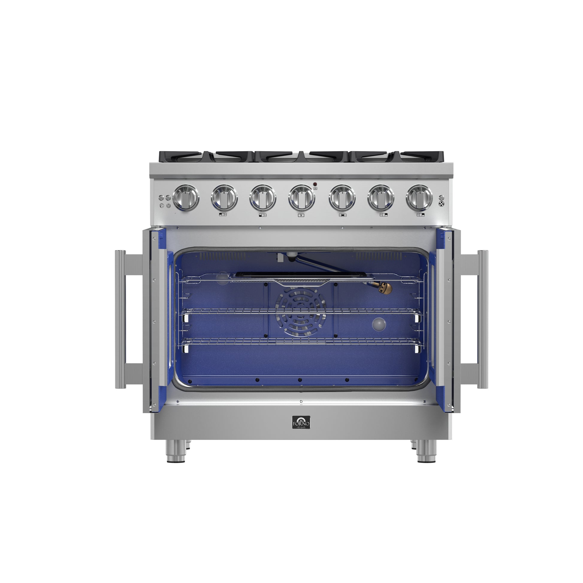 Forno Massimo 36-Inch Freestanding French Door Gas Range, 6 Burners, Convection Oven, Energy Efficient