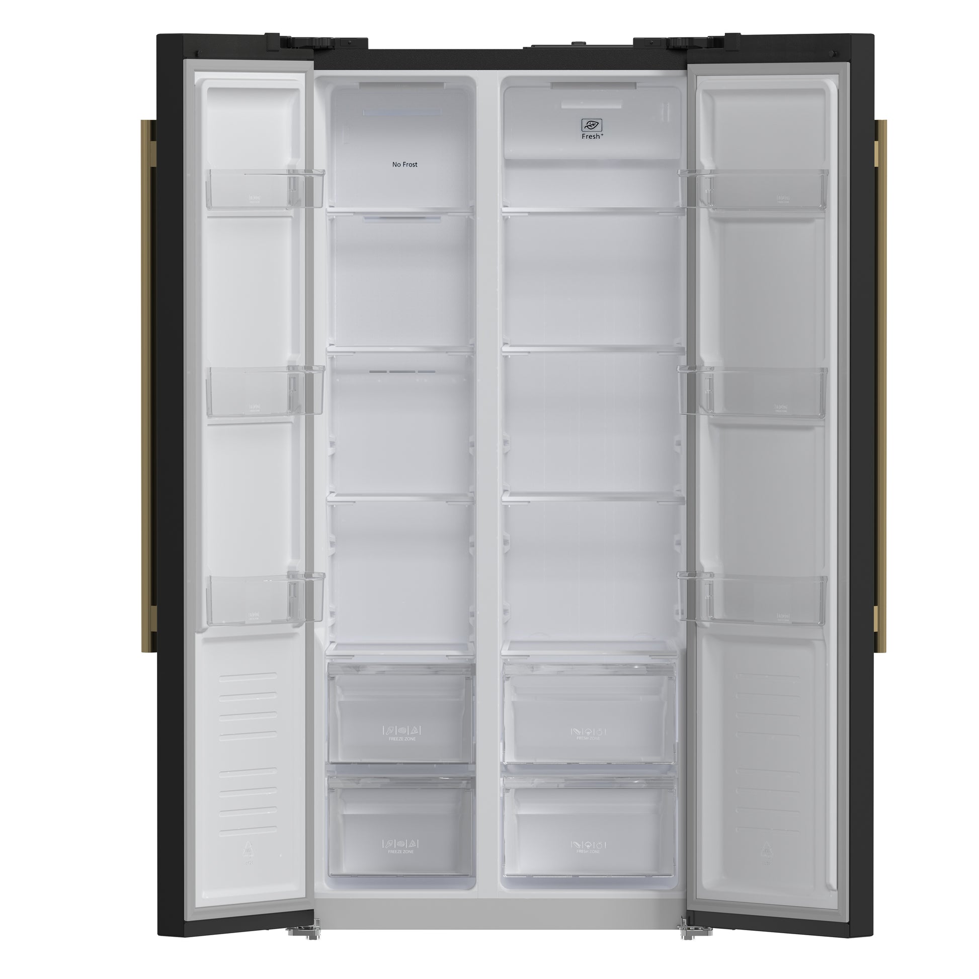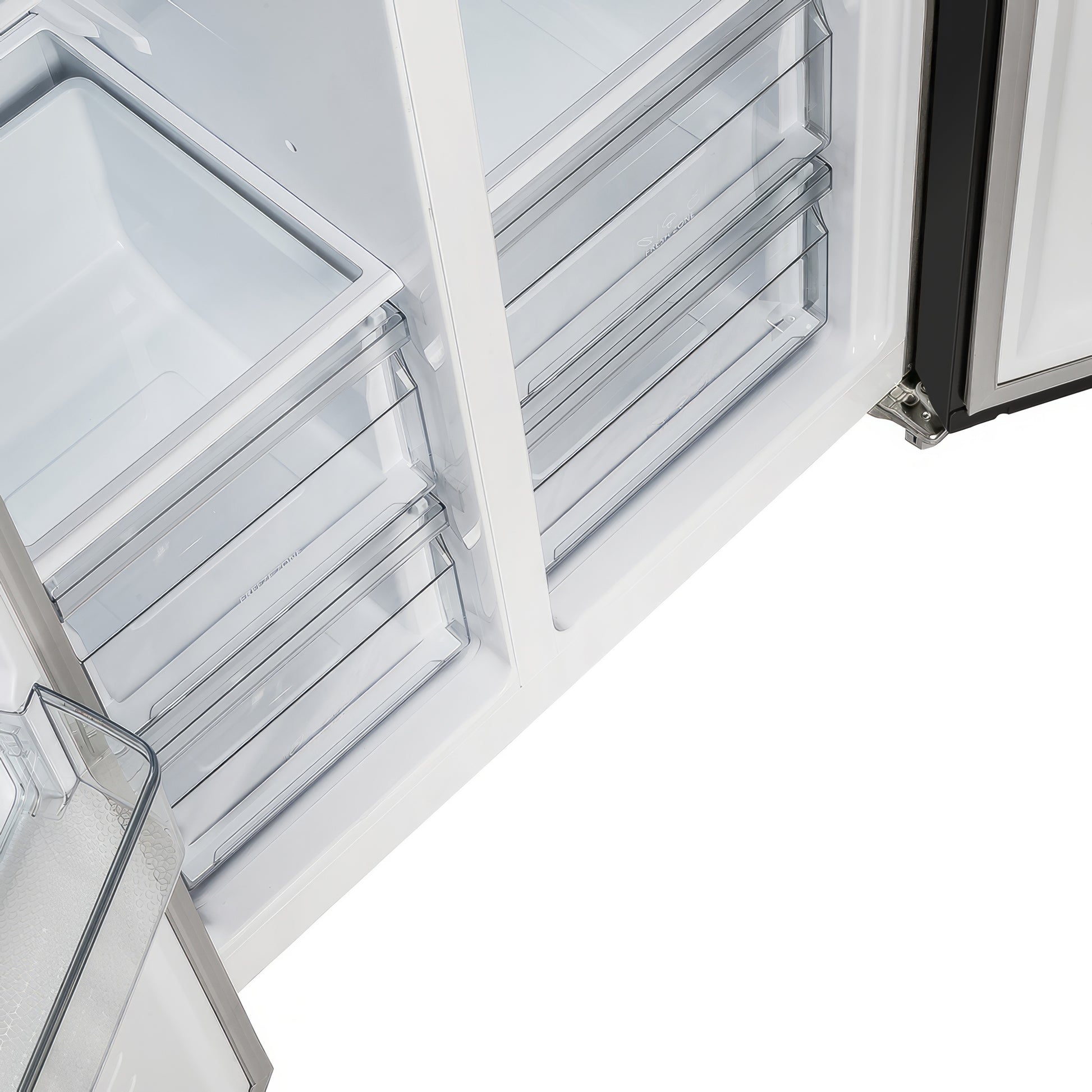 Upgrade your kitchen with the Forno Salerno 33" Side-by-Side Refrigerator, designed for functionality and energy-efficient performance. With a 15.6 cu. ft. total capacity, this frost-free refrigerator ensures hassle-free maintenance while keeping your food fresh. Equipped with an advanced temperature control system, this refrigerator maintains optimal cooling levels to preserve food and beverages. The intuitive LED touch panel offers effortless access to settings and controls. The fresh food compartment provides 9.54 cu. ft. of storage space, featuring three adjustable glass shelves, two crisper drawers, and three door bins for organized food storage. The freezer section offers 6.08 cu. ft. of capacity, complete with three adjustable shelves, two pull-out drawers, and three door bins, ensuring easy access to frozen essentials. With Energy Star Certification, the Forno Salerno delivers reliable performance while reducing energy consumption.