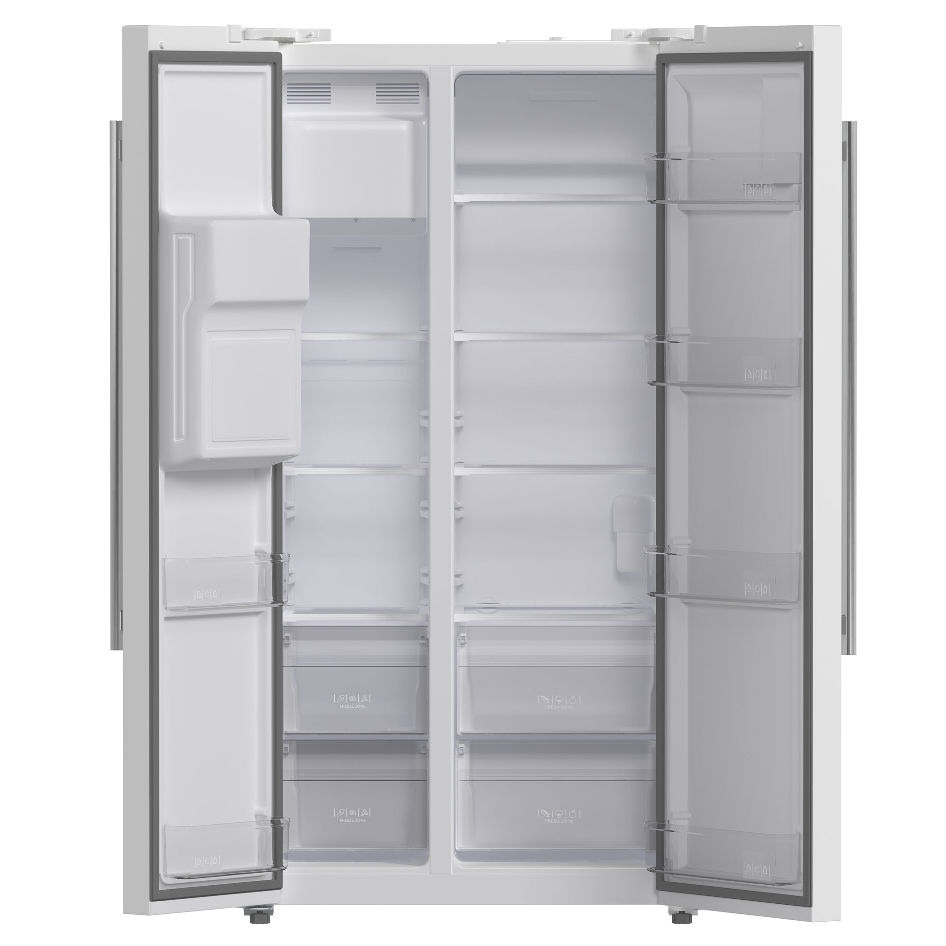 The Forno Salerno 36" Side-by-Side Refrigerator in white combines seamless integration with modern functionality. Designed for efficiency, its inverter compressor ensures quiet operation and precise temperature control, while the frost-free multi-air flow system keeps groceries fresh. With a spacious 20 cu. ft. capacity, this Energy Star Certified refrigerator features adjustable shelving, a 13.48 cu. ft. fresh food section with spill-proof shelves, storage drawers, and substantial door storage. The 6.53 cu. ft. freezer includes multiple shelves, bins, and drawers for easy organization. A built-in water and ice dispenser with a touchscreen panel offers effortless access to ice and temperature settings. Bright LED lighting enhances visibility while minimizing spoilage, making this refrigerator a stylish, high-performance addition to any kitchen.