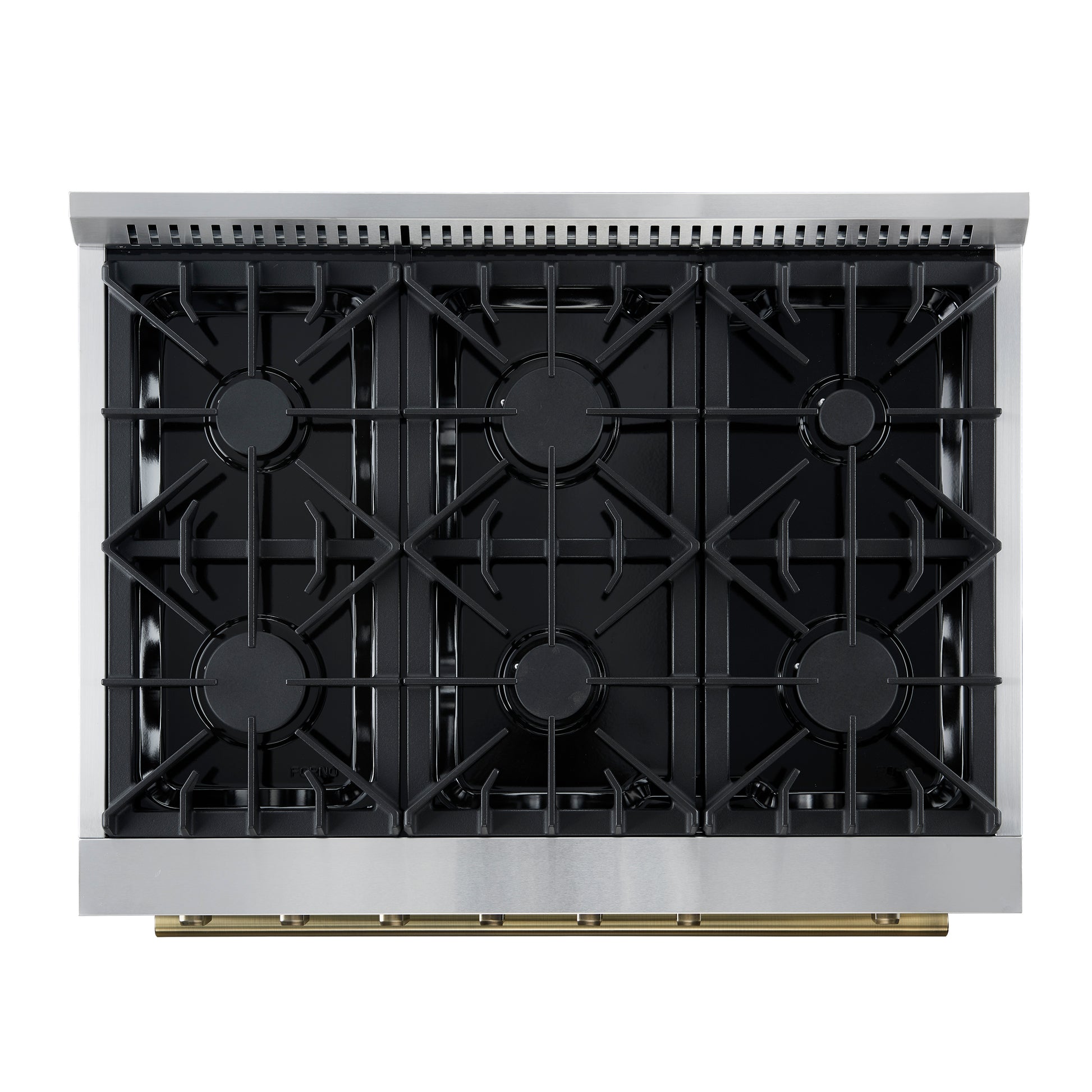 Marco 36-Inch Gas Range White & Antique Brass Design, 6 Burners 67,000 BTU, 5.36 cu.ft. Convection Oven